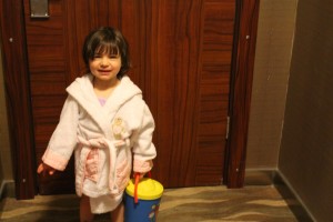 – Termal tatil için gittiğimiz Sarot Otel‘de havuz keyfi yaşadın kollukla, simitle yüzdün. Otelin lobisinde scooterla keyifle gezdin.