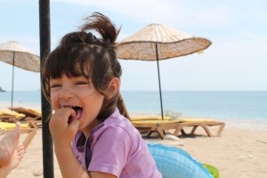 Selin için özelikle sabahları yoga dersi yapılan büyük salonda koşturmak çok büyük bir keyif oldu. My Land ‘de çalışanlar da en az sahipleri kadar sıcak insanlardı ve Selin’le bol bol oynadılar. Hal böyle olunca bizim de arada sırada Ulaş ile dinlenme fırsatımız oldu. Kuş sesleri, limon, portakal ağaçları, bisikletle yapılan kısa geziler, Ulupınar ve yanartaş gezilerimiz tatilimizden akılda kalanlar. Bu arada bir uyarı yapmakta fayda var. Çıralı’da sahilde kumlu alan çok olmasına rağmen, denize yakın olan kısım ve denizin sığ olan kesimleri taşlı. Bu sebeple terlik ya da deniz ayakkabısı kullanılabilir. Selin çıplak ayakla taşlarda gayet rahat yürüdü ama ben biraz zorlandım açıkçası. Öte yandan denize girdikten sonra yemyeşil bir dağ manzarasına karşı yüzmek ayrı bir keyif.