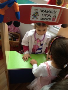 Okuldaki ilk kostüm partinde doktor oldun. Halihazırda elimizde hediye edilen bir doktor kostümün vardı biz de onu kullanalım dedik. Resimlerde de çok tatlı çıkmışsın. Her ne kadar sen de tüm küçük kızlar gibi tüllü kabarık prenses elbiselerinden hoşlansan da, bence bu farklı kostüm sana çok daha fazla yakıştı.