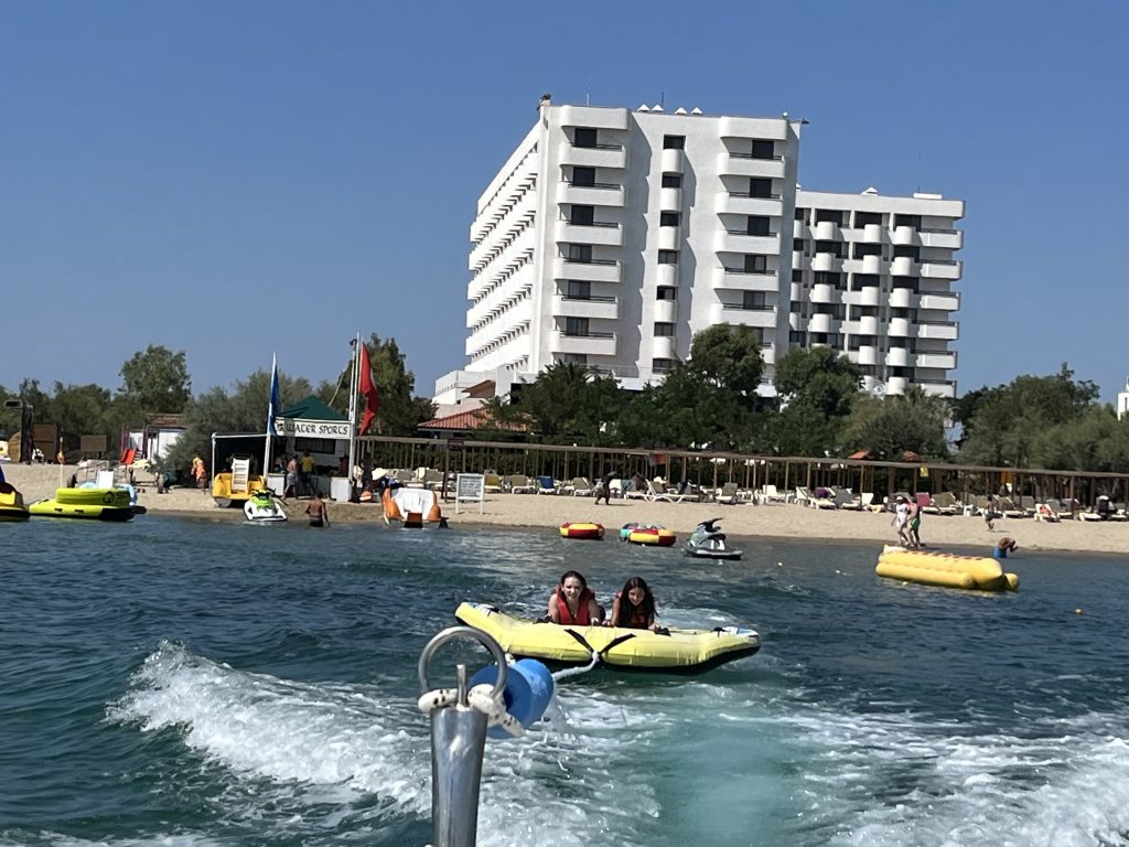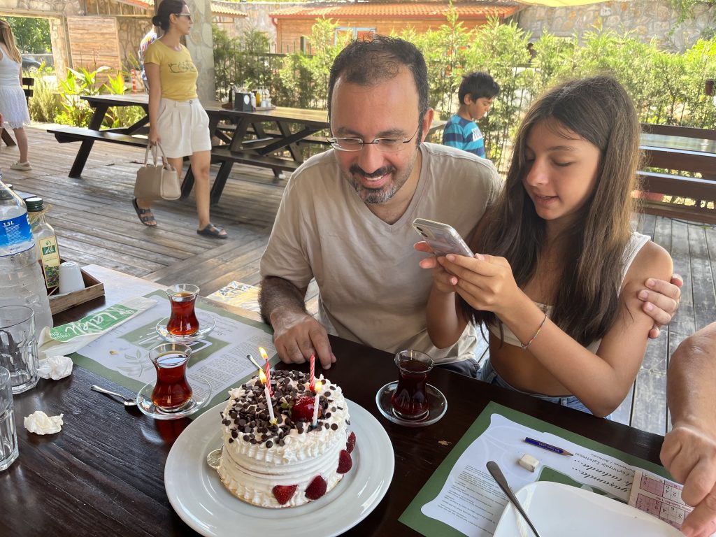 Geçen sene ev kiraladığımız Altınova’dan memnun kalıp bu sene de çok istediğimiz profesörler sitesinden gene 1 aylık ev kiraladık. Böylece hem amcanları görebildin hem denize girebildin hem de arkadaşların ile vakit geçirebildin. Geçen seneden farklı olarak bu sene bir de Aytaş beach’i deneyimledik ki sana ve bize de çok güzel geldi. Zeytin ağaçları altında serin serin uzanmak soğuk ama pırıl pırıl denize girmek ve en çok da hız teknesi arkasına bağlanan simit vb. aparatlarla denizde gezme çok hoşuna gitti. Laleli’de amcanlarla beraber hem benim hem babanın doğumgününü kutlamamız da ayrıca keyifle geçirdiğimiz günlerden biriydi.