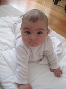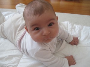 4. ayımı doldurmak üzereyim..Dişlerim çok fena kaşınıyor. Sürekli ağzıma bir şeyler alma ihtiyacı hissediyorum..En çok da ellerimi ağzıma sokuyorum. Yüzüstü yerde oynamak hoşuma gidiyor. Ses çıkaran nesneleri sallamak çok eğlenceli. Öte yandan babam emziğimi ağzıma vermek yerine biraz uzağıma koyup insanüstü çabayla ulaşmaya çalışmamı keyifle izliyor ama ben kan ter ve en çok da gözyaşı döküyorum 🙁 Bazen başarısız olup yeterince uzun ağladığımda annem dayanamayıp imdadıma yetişiyor.